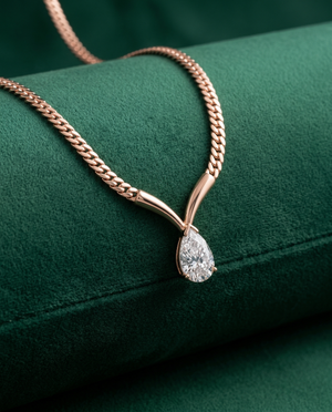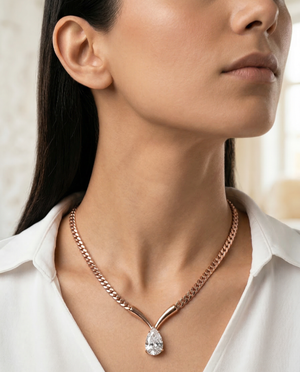 A sleek gold chain paired with a luminous pear-cut stone—made to elevate everyday dressing without trying too hard.