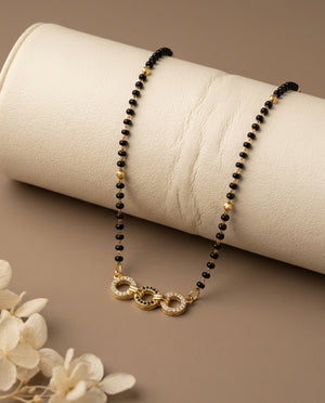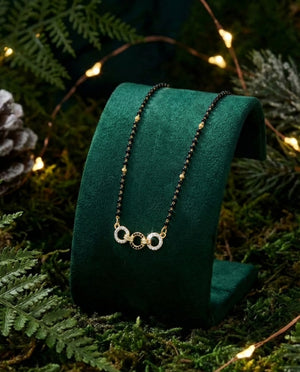 A modern three-link mangalsutra crafted with black beads and gold detailing — designed for everyday elegance with a contemporary edge.